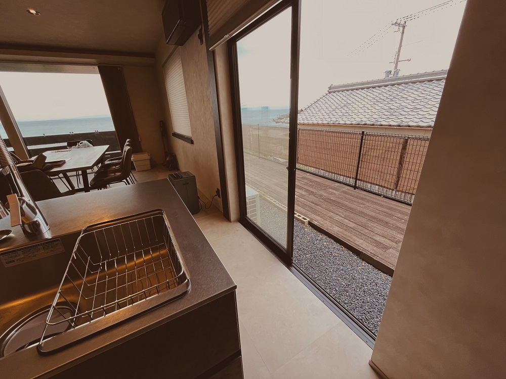 キッチンの横の窓を開けると第二のウッドデッキに直ぐアクセスできます☆