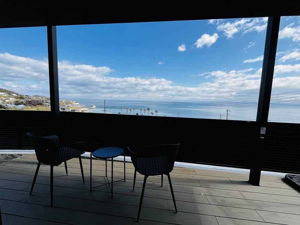 海側のウッドデッキはスッキリとして、アウトドアチェアとサイドテーブルを設置しました!